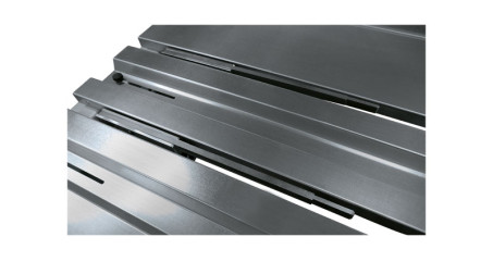 Butée arrière à commande électrique référence PTSL-BAE2-1500, course de 10 à 1500 mm, butée gérée par la commande numérique de la plieuse. La butée comprend la table arrière pour le soutien des grands formats de tôle, 2 rangées de 6 doigts de butée. NB : cette option est à prévoir à la commande de la plieuse et nécessite une alimentation en air comprimé.