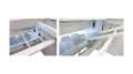 Peigne soutien de tôles arrière automatique pour cisaille CGM2050, référence CGM2050-PEIGNE. Ce dispositif est couplé directement à la barre de coupe et permet au peigne de se positionner automatiquement en position haute pour soutenir la tôle et en position basse pour envoyer la tôle coupée dans le bac
